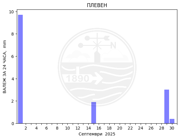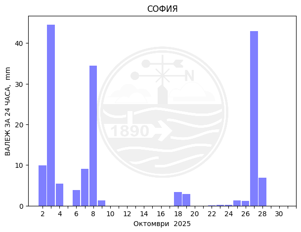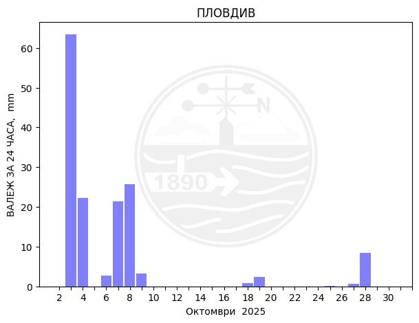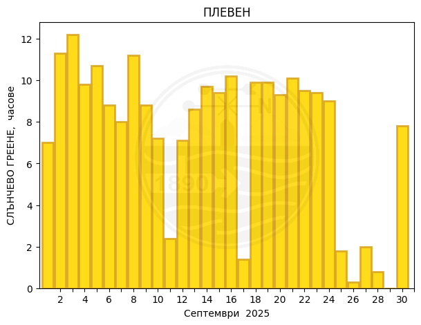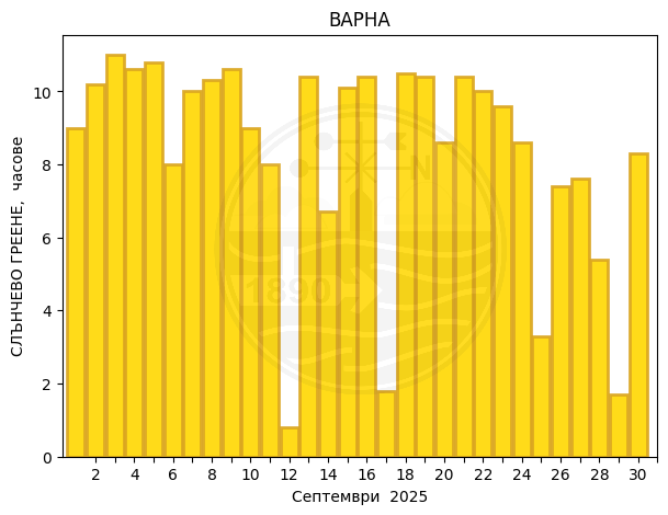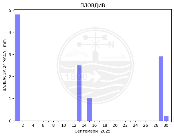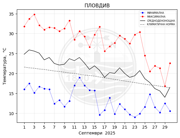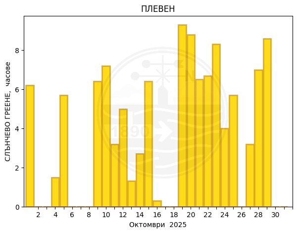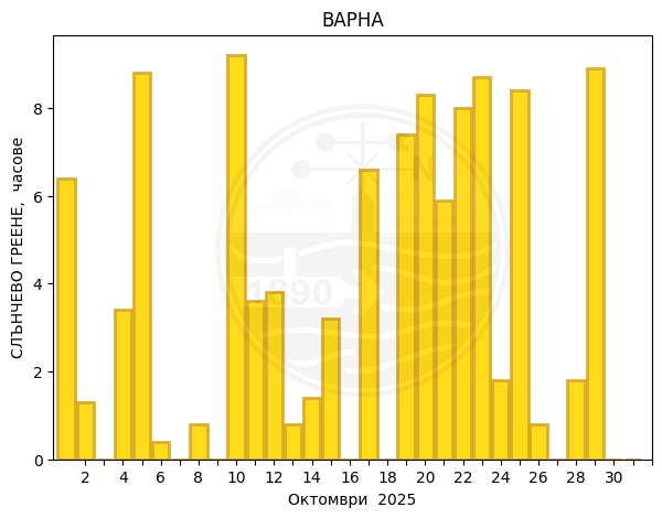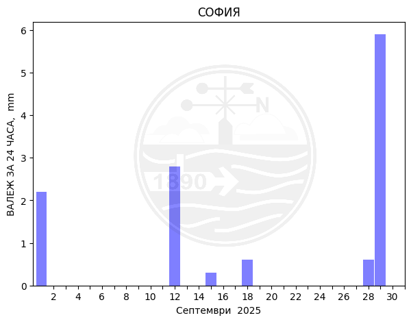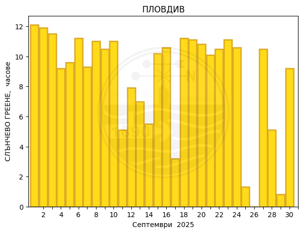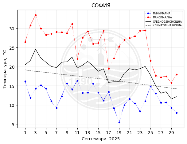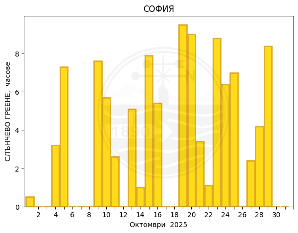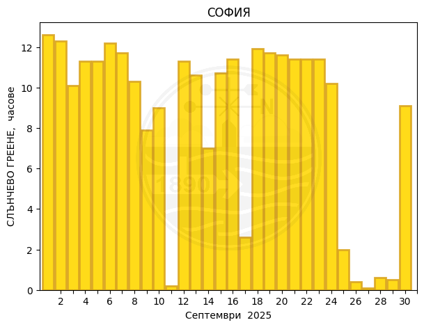 Air temperature: air temperature is a measure of the average thermal energy of ambient air molecules—the higher the temperature, the higher the kinetic energy of the molecules. Historically, the most common instrument used was a glass thermometer with liquid that expands or contracts as a result of heating or cooling. Mercury was the most commonly used. Mercury thermometers are not used in meteorology for almost a decade, as mercury is dangerous if it leaks when the thermometer breaks. In meteorological services around the world, including the National Institute of Meteorology and Hydrology (NIMH), as part of the World Meteorological Organization (WMO), these thermometers have been replaced by those with alcohol-based liquid or digital thermometers. Modern automatic weather stations use an electronic sensor. The measurement accuracy of these sensors depends on the material from which they are made. High accuracy is achieved, for example, with sensors made of platinum. In order to measure the temperature most accurately, the instruments are placed under radiation protection - a meteorological cell of special construction so as to avoid the influence of direct heating from the Sun. The construction of the meteorological cell allows air to pass through it unhindered, it always faces north and is painted white. Combined with the compulsory positioning of the instrument cage 2 metres above the ground on a grassed mown area, avoids a maximum number of disturbances in the measurements and guarantees the reading of the actual air temperature. In NIMH, according to the standard WMO recommendations, the daily maximum (highest) and minimum (lowest) temperature are recorded once a day, at 06 UTC (08:00/09:00 - in winter/summer time in Bulgaria) and at 18 UTC (20:00/21:00 - in winter/summer time in Bulgaria), respectively, while instantaneous air temperature measurements can be made at any time of the day, practically continuously.